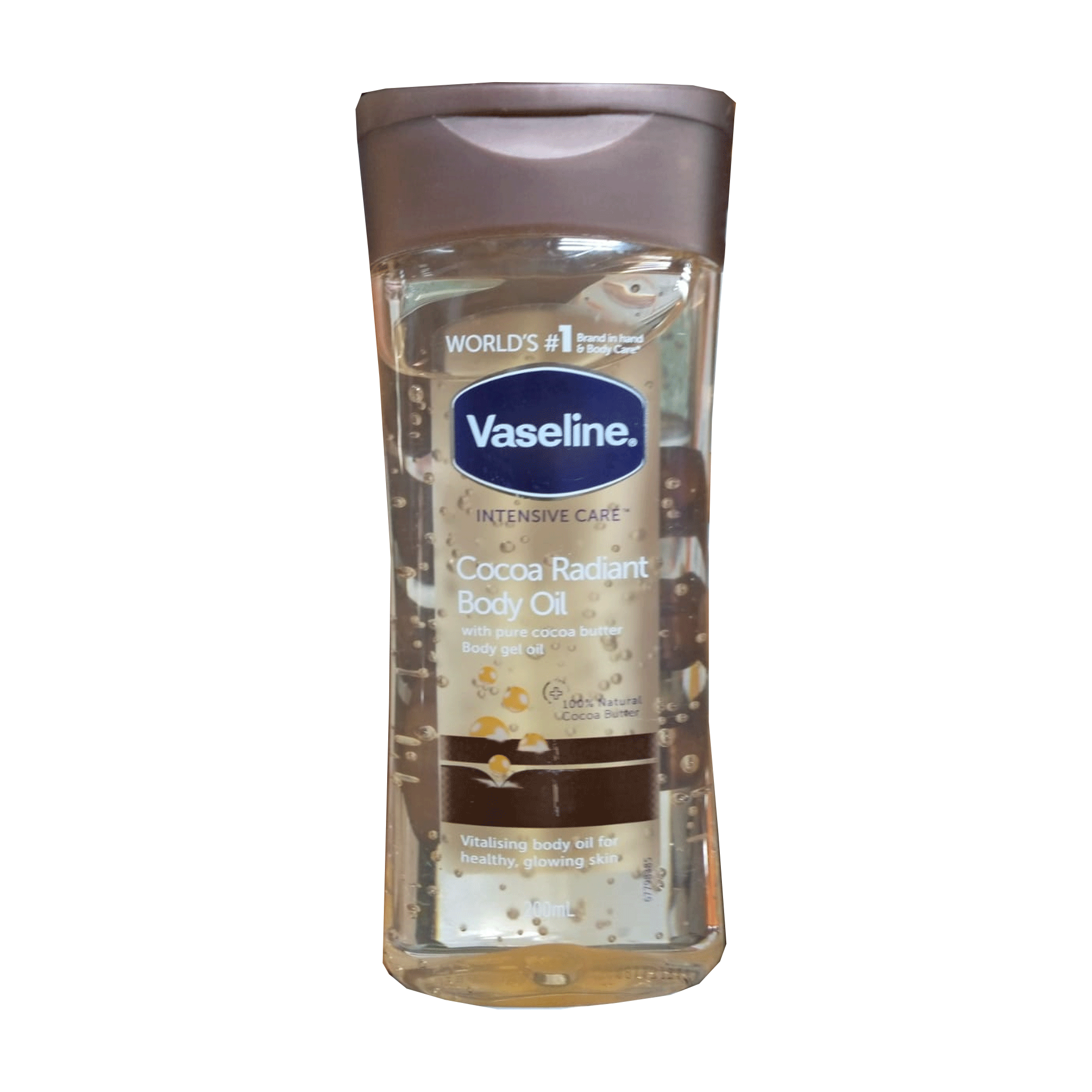 Vaseline Cocoa Radiant Body Gel Oil (200ml) is the ultimate secret to glowing skin. Made with pure Cocoa Butter and replenishing oils, it locks in moisture to revitalize dry and dull-looking skin. The unique gel-oil formula glides on smoothly and leaves a healthy, radiant sheen without the heavy, greasy feel of traditional oils. It helps to improve skin elasticity and evens out tone over time.