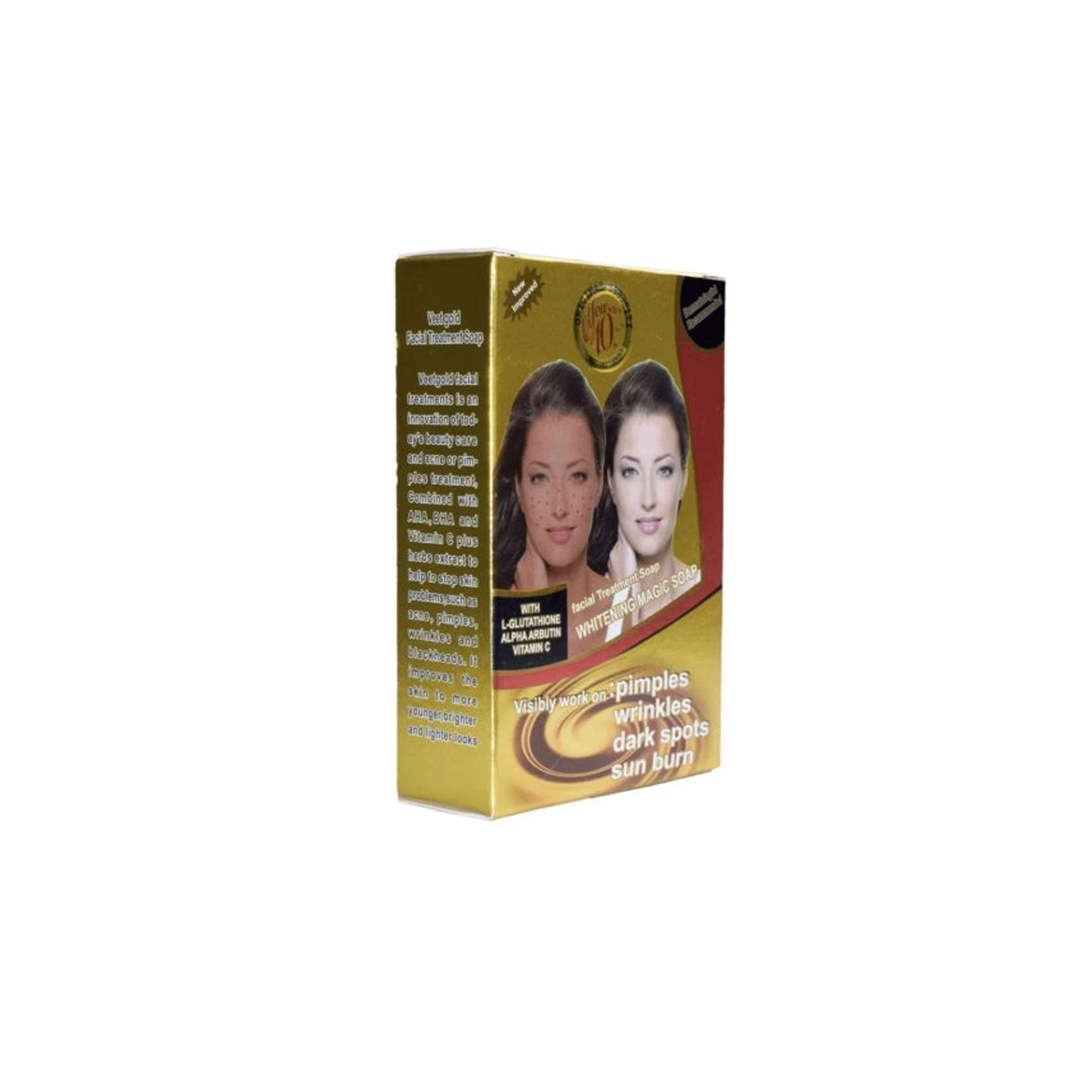 VEET GOLD FACIAL WHITENING MAGIC TREATMENT SOAP 100G is a specialized skin-lightening cleansing bar designed specifically for the delicate skin of the face and neck. This 100G bar features an intensive “Magic Treatment” formula that focuses on fading dark spots, acne scars, and hyperpigmentation in a very short time. Formulated with active whitening boosters and botanical extracts, it works at the cellular level to inhibit excess melanin production while providing a deep, purifying clean.