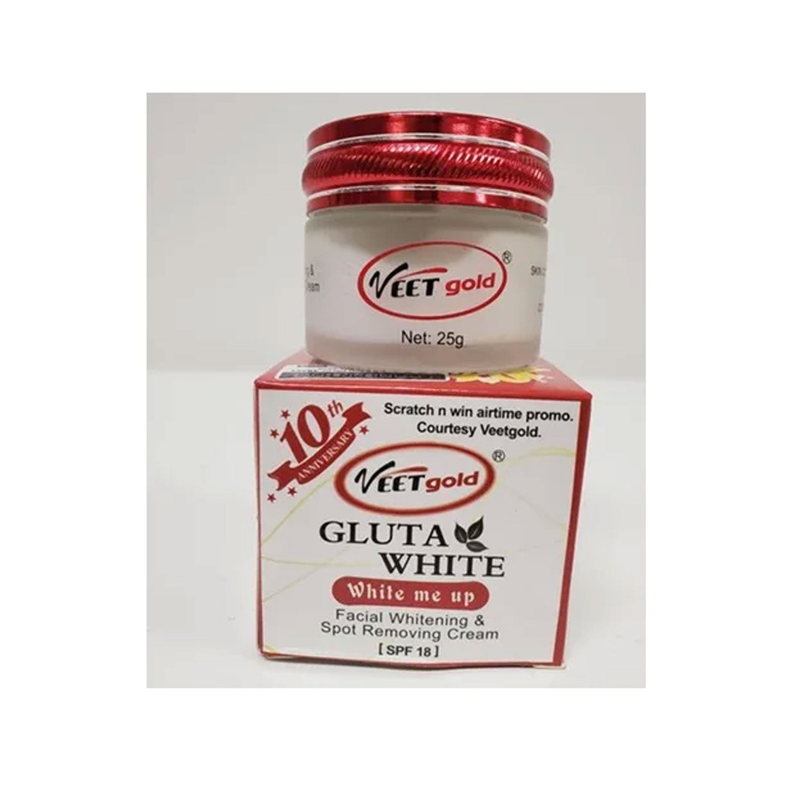 Veet Gold Gluta White Facial Whitening & Spot Removing Cream (SPF 18) is a high-performance facial treatment designed specifically to target stubborn imperfections and provide a significantly lighter complexion. This specialized cream focuses on fading dark spots, acne scars, and hyperpigmentation across your face and neck, helping to restore a uniform and radiant appearance.