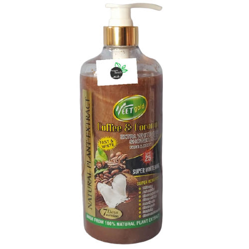 Veetgold Coffee & Coconut Extra Whitening Shower Bath 1000ml is a high-performance whitening cleanser designed for individuals who desire a professional-grade skin brightening result. This massive 1000ml bottle features an intensive formula enriched with natural Coffee and Coconut extracts, providing a high concentration of antioxidants and vitamins that gently exfoliate and nourish the skin.