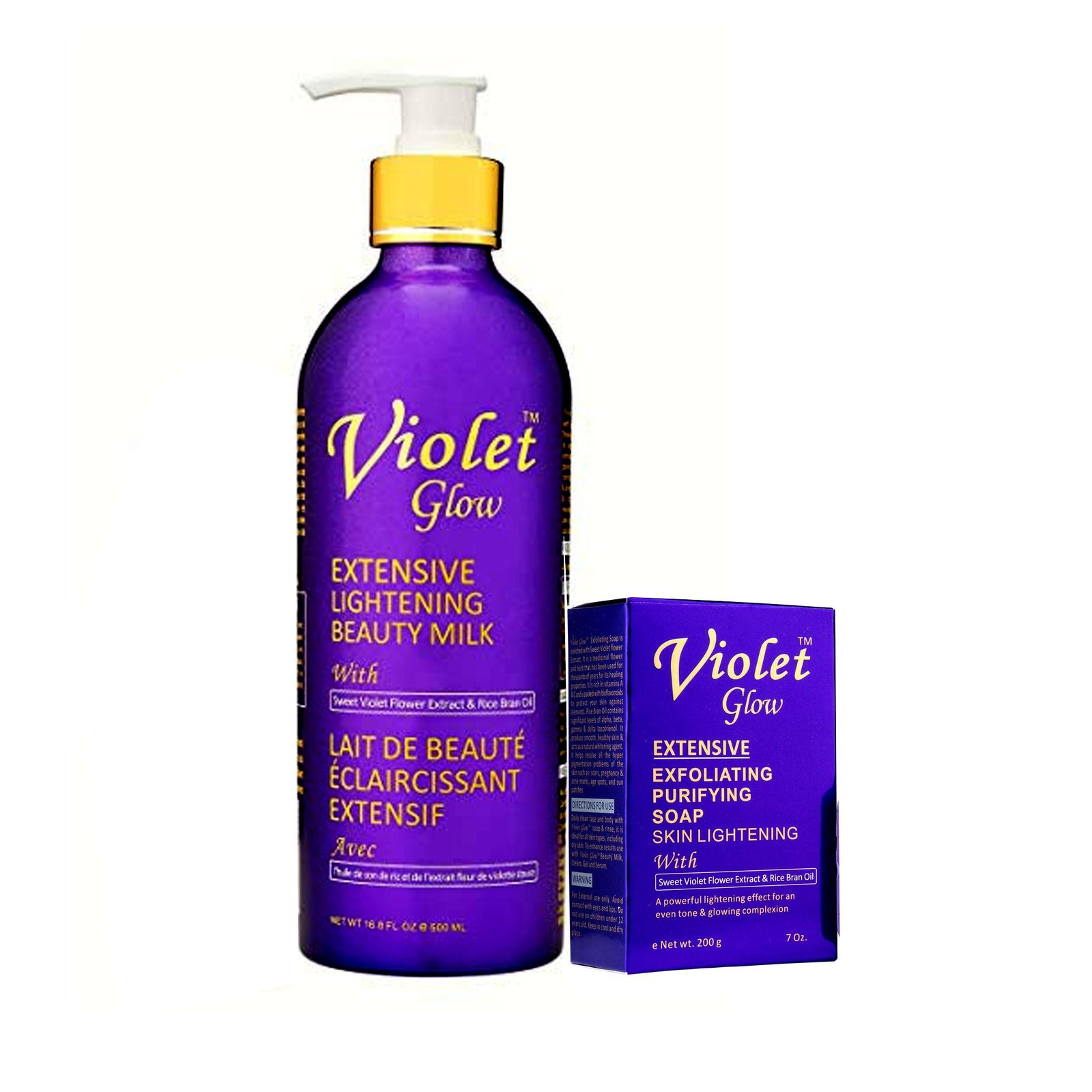 + Delivery in 24 Hours!The 2-piece whitening set from Violet Glow featuring a beauty milk and soap for an intensive, flawlessly fair tone.