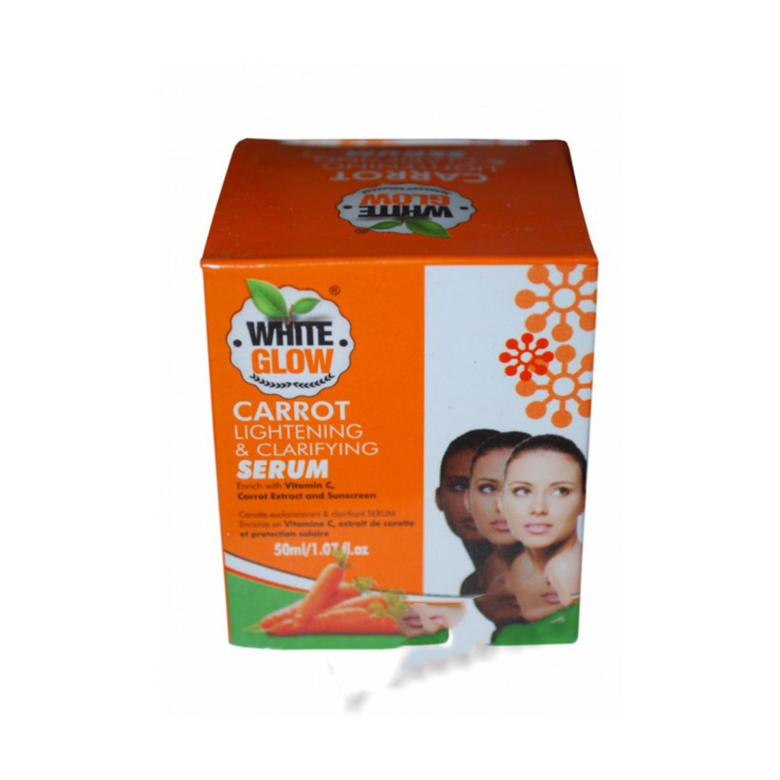 WHITE GLOW CARROT LIGHTENING & CLARIFYING SERUM is a high-potency skin treatment designed to provide rapid and visible results in skin brightening. This concentrated serum harnesses the natural power of high-quality carrot oil combined with active whitening agents to target melanin production at the cellular level. It effectively fades stubborn dark spots, acne marks, and uneven patches across both the face and body, helping to restore a youthful brilliance and a flawlessly uniform appearance.