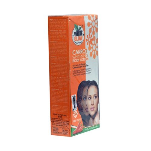 + Delivery in 24 Hours!White Glow Carrot Whitening Body Lotion 400ml is the 400ml brightening body lotion with Carrot Oil that targets dark marks and provides 48-hour hydration for a radiant, uniform skin tone.