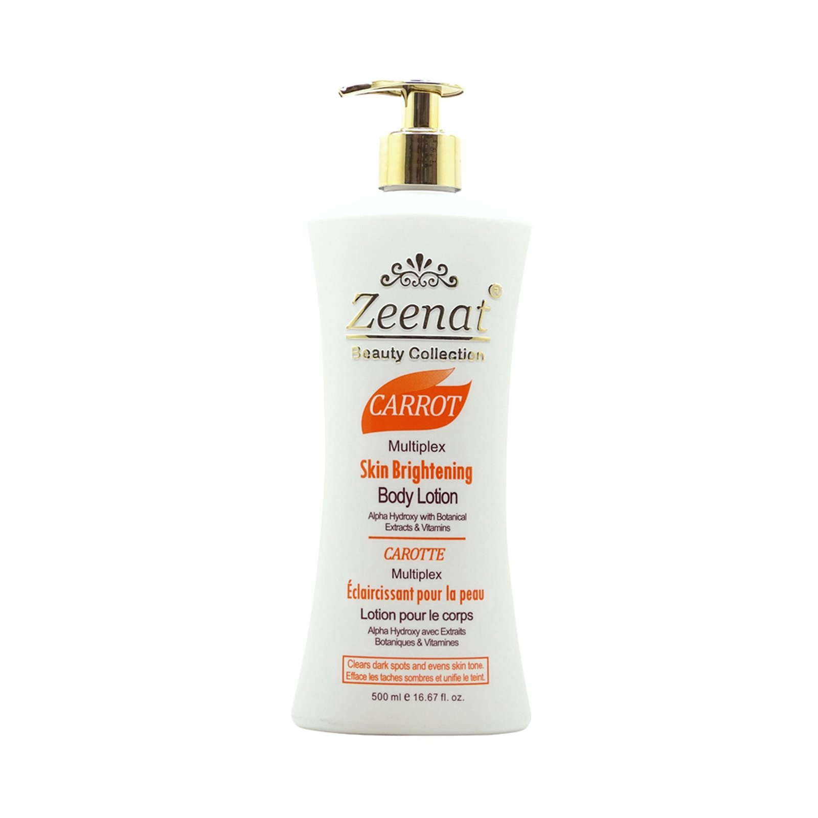Zeenat Carrot Multiplex Skin Brightening Body Lotion 500ml is an elite skin-toning treatment designed for individuals who desire a professional-grade whitening result and a healthy, radiant complexion. This 500ml bottle harnesses the natural power of high-quality carrot oil and the “Multiplex” whitening system to target melanin production across your entire physique.